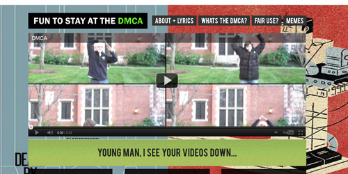 Have you ever been excited to watch a video online only to click it and realize that it’s been taken down for copyright issues? Us too, which is why we decided to do our project on the topic of the DMCA and fair use circumvention. Conveniently, the song “YMCA” by the Village People was ripe for a parody on the topic. The goal in creating the “DMCA” song, music video, and website was to present the DMCA and certain safe-harbor law in an easily digestible format. Too many videos are taken down without true cause, and understanding of fair use arguments as well the the word and intent of the Digital Millennium Copyright Act could lead to more counter-notices and hence a greater pool of video entertainment available to the public.