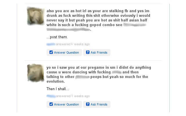 Case in point, from a friend’s Formspring (I apologize in advance for the language and poor spelling):