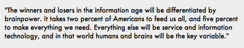 Why care? Well, while Mr. Allen touts the site’s ability to cover teams that have essentially never been covered before, I worry about the implications that this sort of human-less writing can have for our future. Wasn’t it only several years ago that Thomas Friedman was telling us in The Lexus and the Olive Tree the famous T.J. Rogers quote: