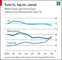 So, it is really no surprise that, in 2008, for the first time, more people said they get their national and international news from the Internet than from newspapers (see here, for more stark statistics on the newspaper’s future). The issue is not just that one day I’ll have to permanently adjust my eyes to reading from a screen, or work on not spilling Reese’s Coco Puffs on my laptop, but that online journalism has opened a huge can of worms for the question of citizen journalism, redefining who can deliver the news, how they do it, and who checks for veracity.